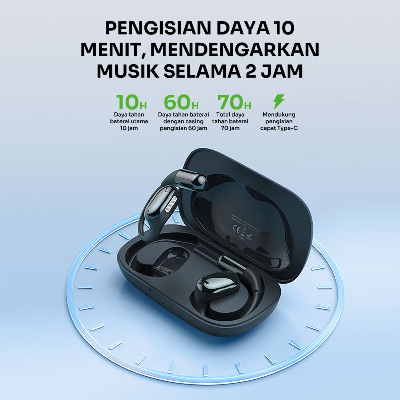 ROBOT True Wireless Open Ear Headphone Earphone Sport Running PlayTime 70 Hours Headset Bluetooth 5.4 Adjustable Ear Ho
