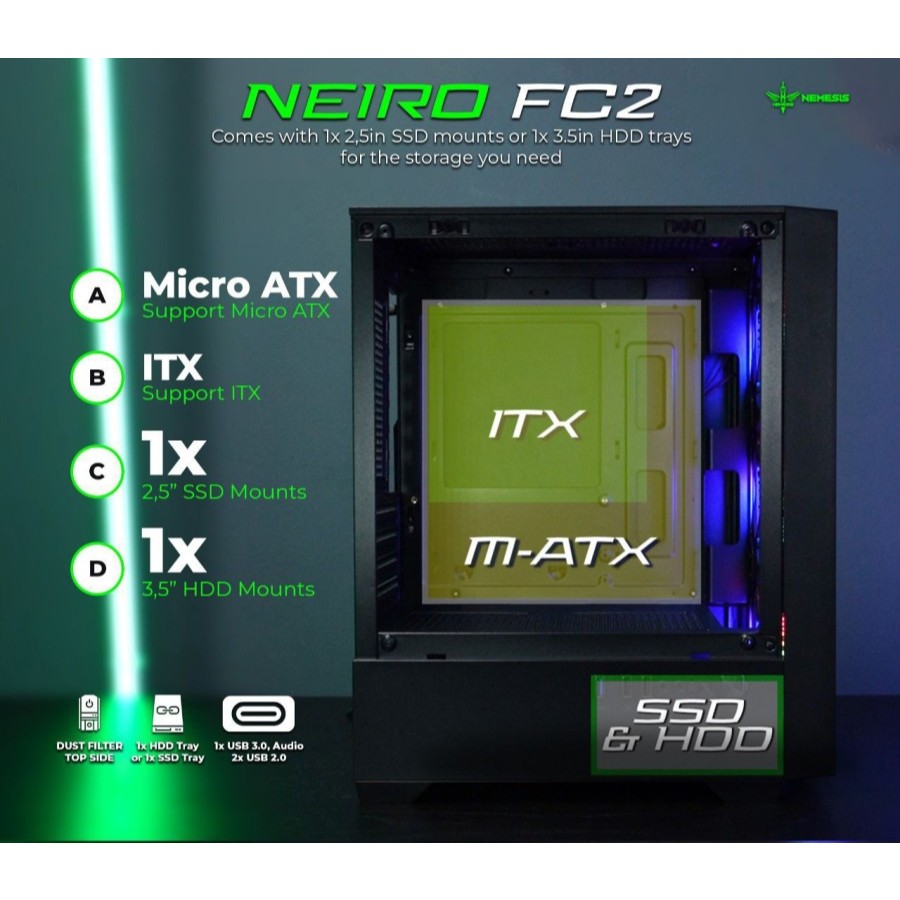 PC CASE / CASING PC GAMING M-ATX ITX NYK Nemesis FRAX FC2