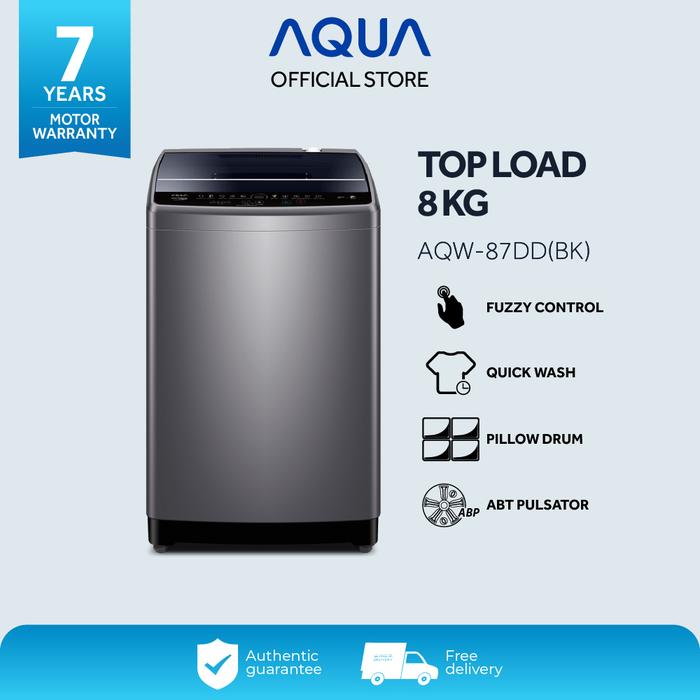 AQUA Elektronik Mesin Cuci 1 Tabung 8 Kg Top Loading AQW-87DD(BK),mesin cuci aqua