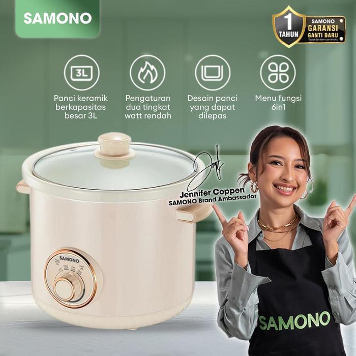 ) SAMONO Slow Cooker Panci Pembuat MPASI Bayi Food Grade Watt rendah 175 Watt Kapasitas 3 Liter (SW-SC3L) - SW-SC3L