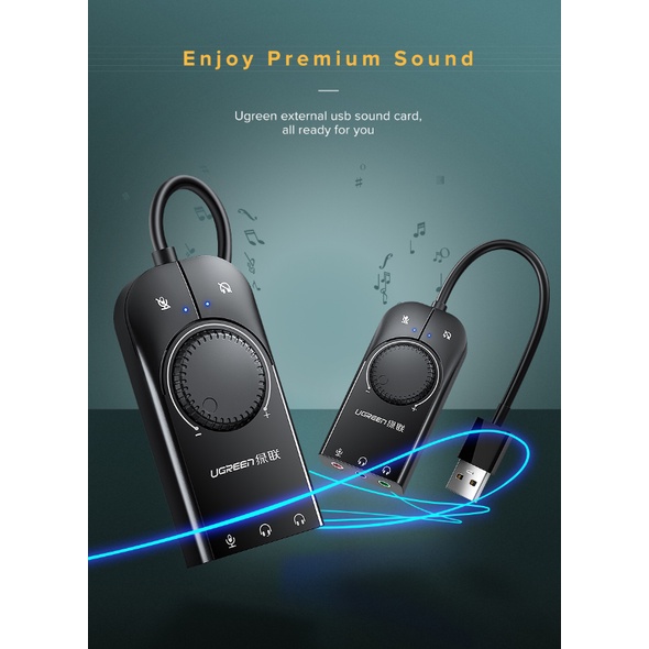UGREEN Soundcard Eksternal Audio Adapter USB A To Jack 3.5Mm Stereo Adapter For PC Laptop PS4 PS5