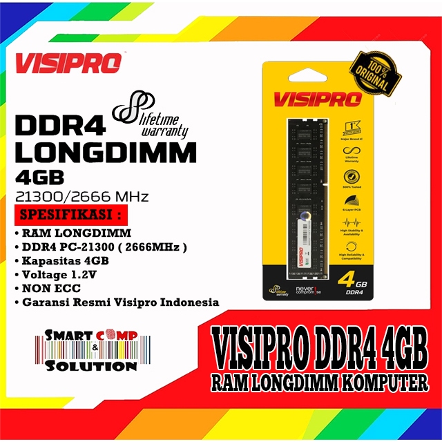 RAM MEMORY VISIPRO DDR4 4GB / 8GB 2666MHz PC-21300 SODIMM LAPTOP / LONGDIMM PC