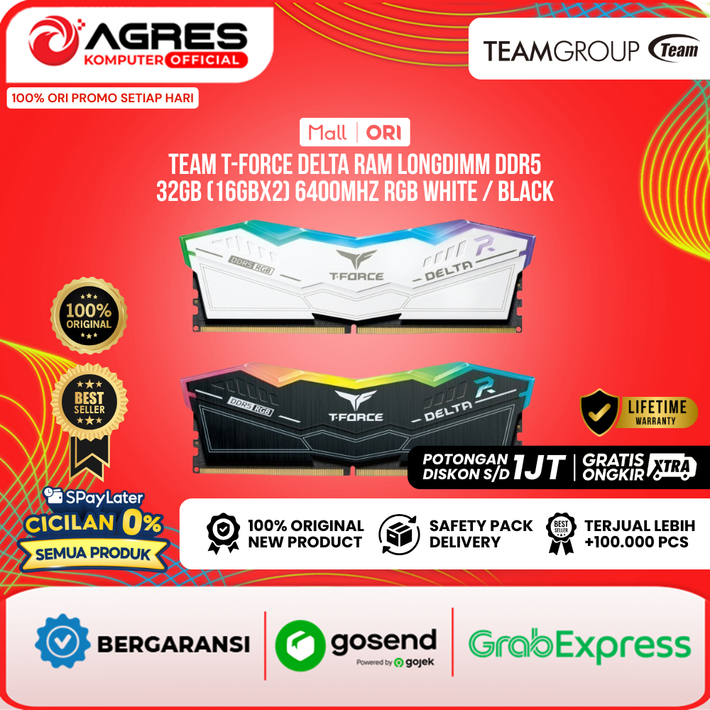 TEAM T-FORCE DELTA RAM LONGDIMM DDR5 32GB (16GBX2) 6400MHZ RGB WHITE / BLACK