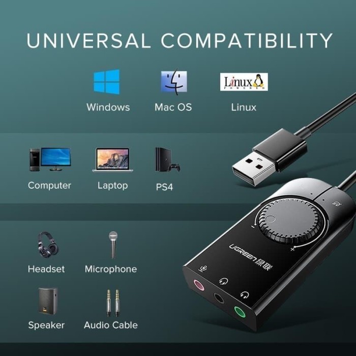 UGREEN Sound Card External Stereo Sound Audio Adapter Laptop PC PS4