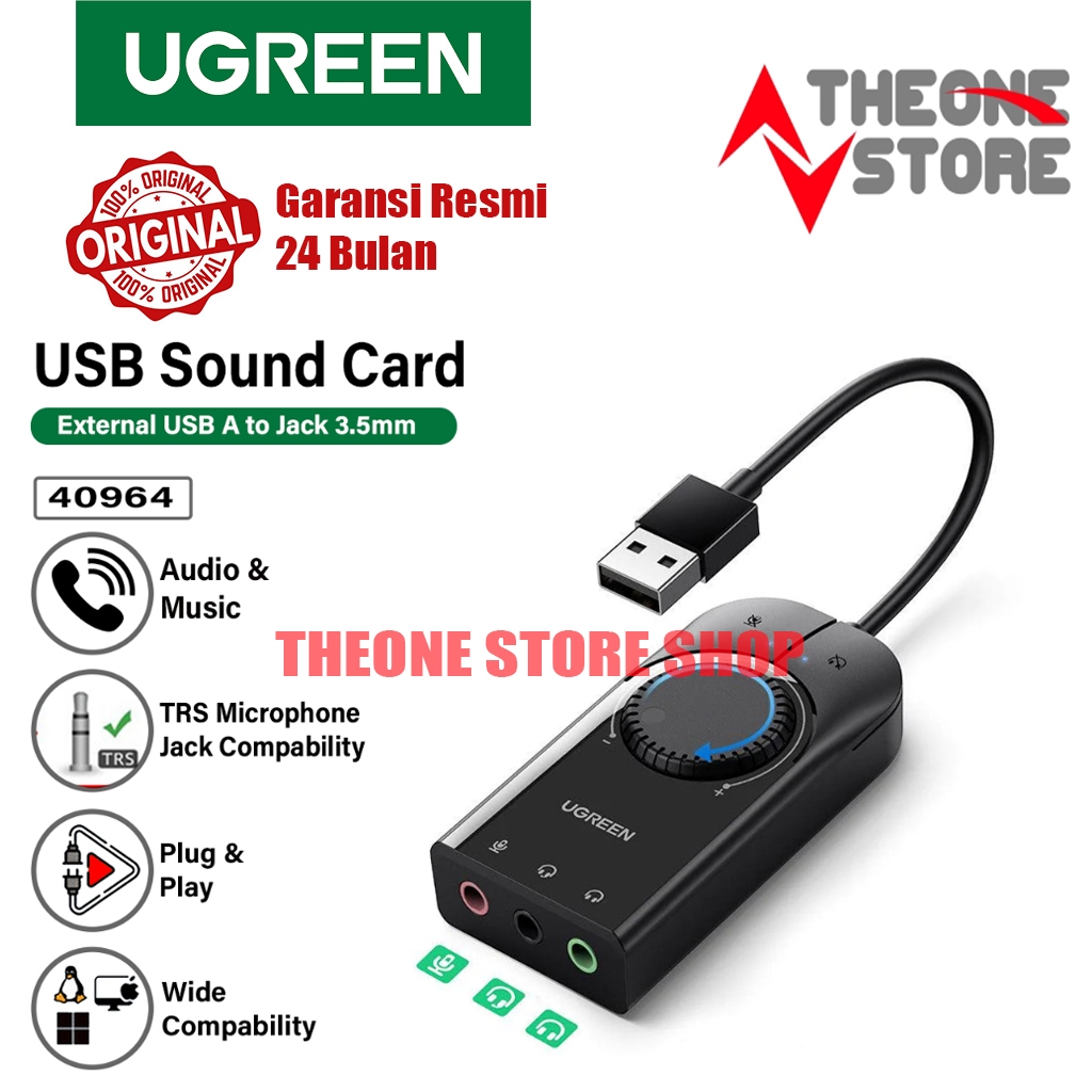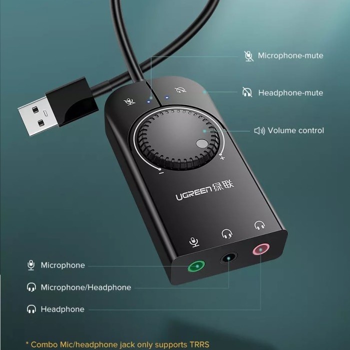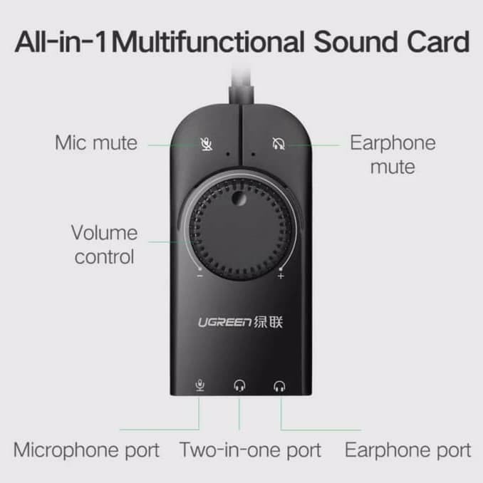 Ugreen SoundCard USB External Stereo Audio Adapter With Volume For PC Laptop PS4