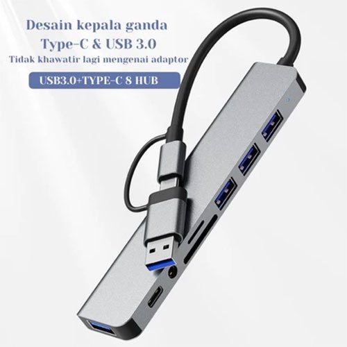 USB 8 In 1 Converter Type C Hub Adapter Multi USB HUB Type-C to USB4+SD+TF Card Reader+3.5mm Audio Output_st-8in1 Pasang dan mainkan