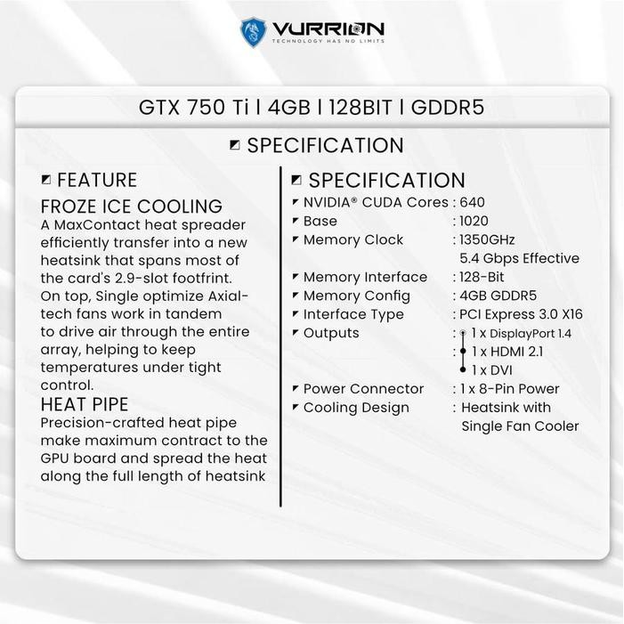 VGA NVIDIA VURRION GTX 750 TI 4GB GDDR5 128-bit GTX750TI 4G
