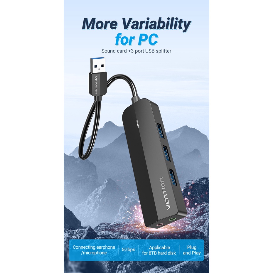 Vention USB Hub 3.0 with 2in1 Sound card External Stereo Audio