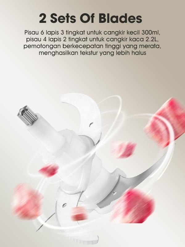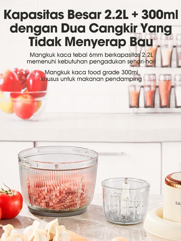 Samono Food Chopper 2 in 1 kapasitas 2,2L dan 300ml Multifungsi 300 Watt Pengggiling Daging Penghalus Makanan (SW-CD300)