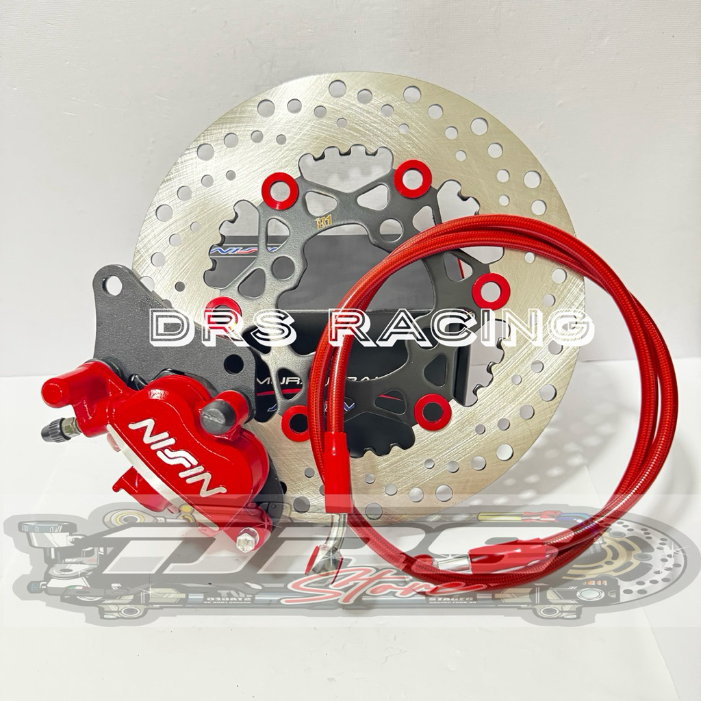 KALIPER SAMURAI 2P + DISC CAKRAM DEPAN 220MM + SELANG REM 95CM + BREKET FIZR, NOUVO, VEGA OLD, JUP MX OLD, JUP BURHAN, B
