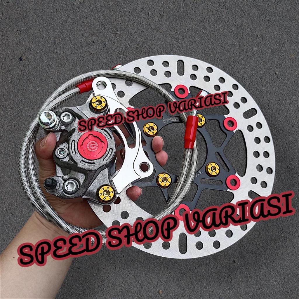 PAKET PIRINGAN DISC 220MM + KALIPER 2PISTON + SELANG REM 90CM + BAUT DISC + BREKET 220MM BEAT VARIO SCOOPY GENIO MIO SMI