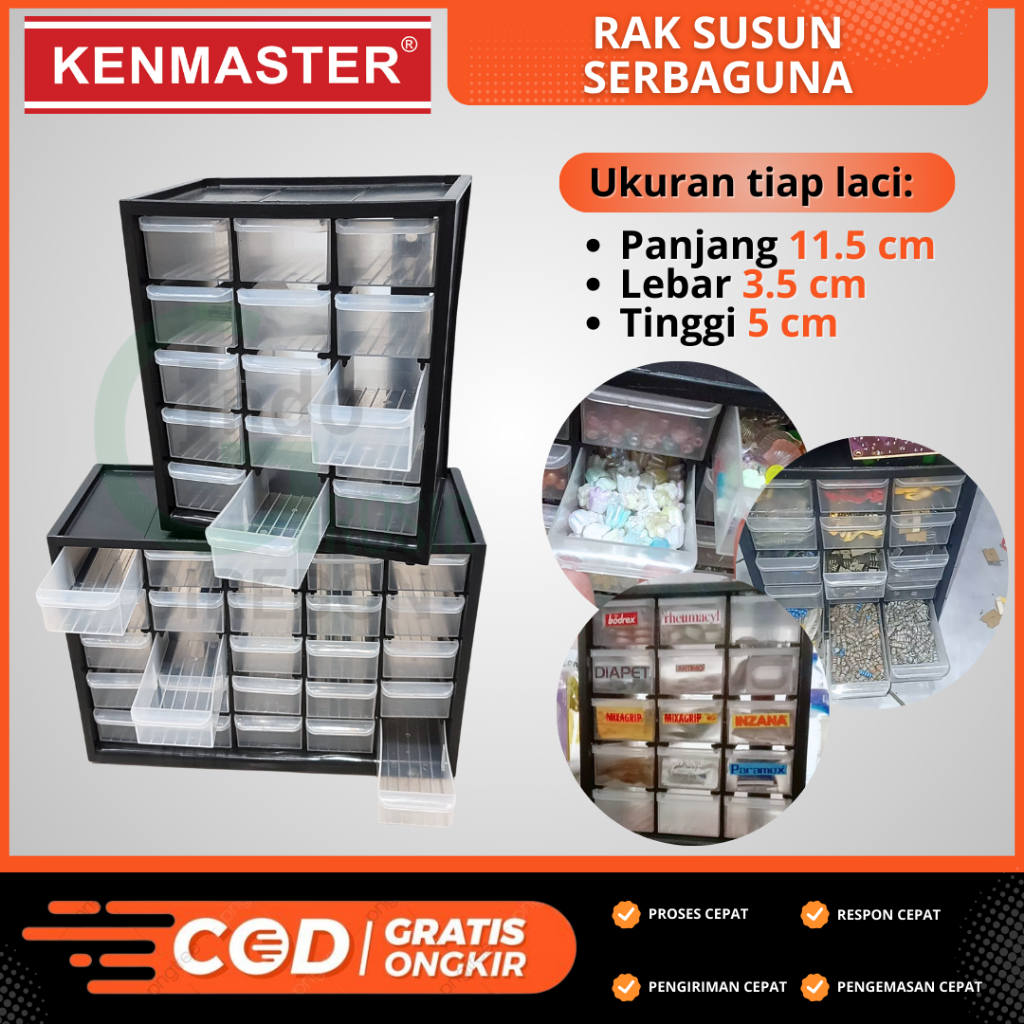 Rak Susun Serbaguna 15 Laci & 25 Laci Etalase Mini Tempat Penyimpanan Obat2an Spare Part Kenmaster