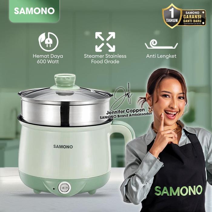 SAMONO Panci Listrik 1,5 Liter Fry Pan Teflon Keramik Kukusan Stainless Serbaguna Low Watt Garansi 1 Tahun [SW-DG01P]