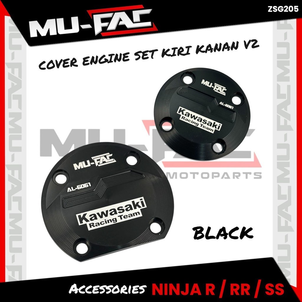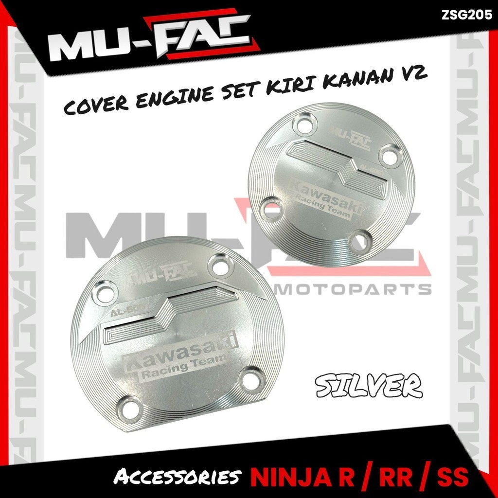 Cover ENGINE Set Kiri Kanan V2 MUFAC Isi 2 Pcs Kawasaki NINJA 150 R RR SS Full CNC ALUMINIUM