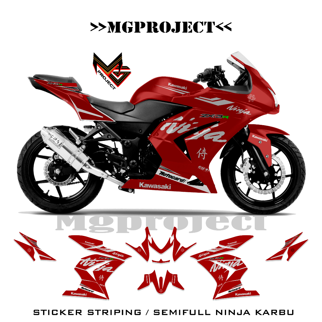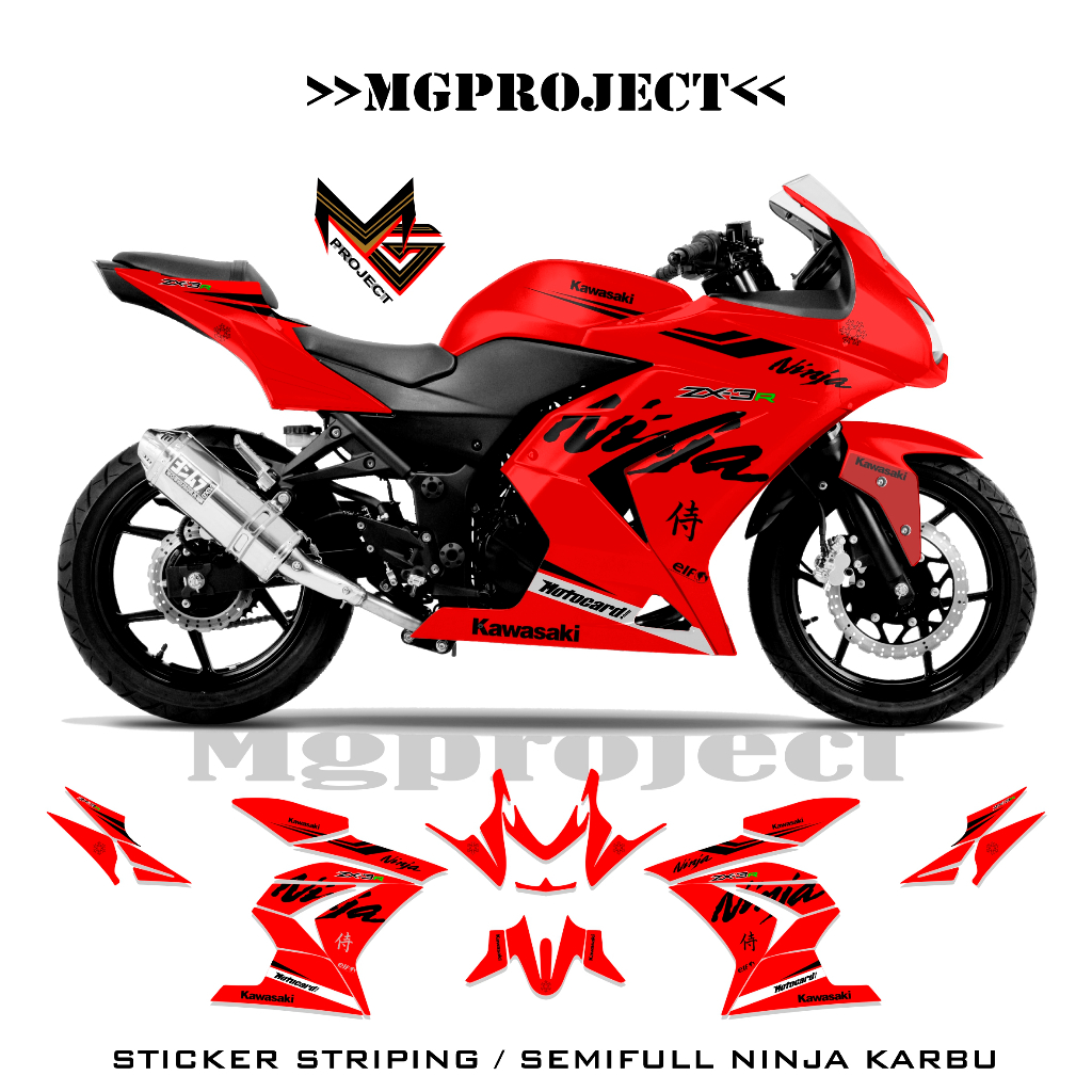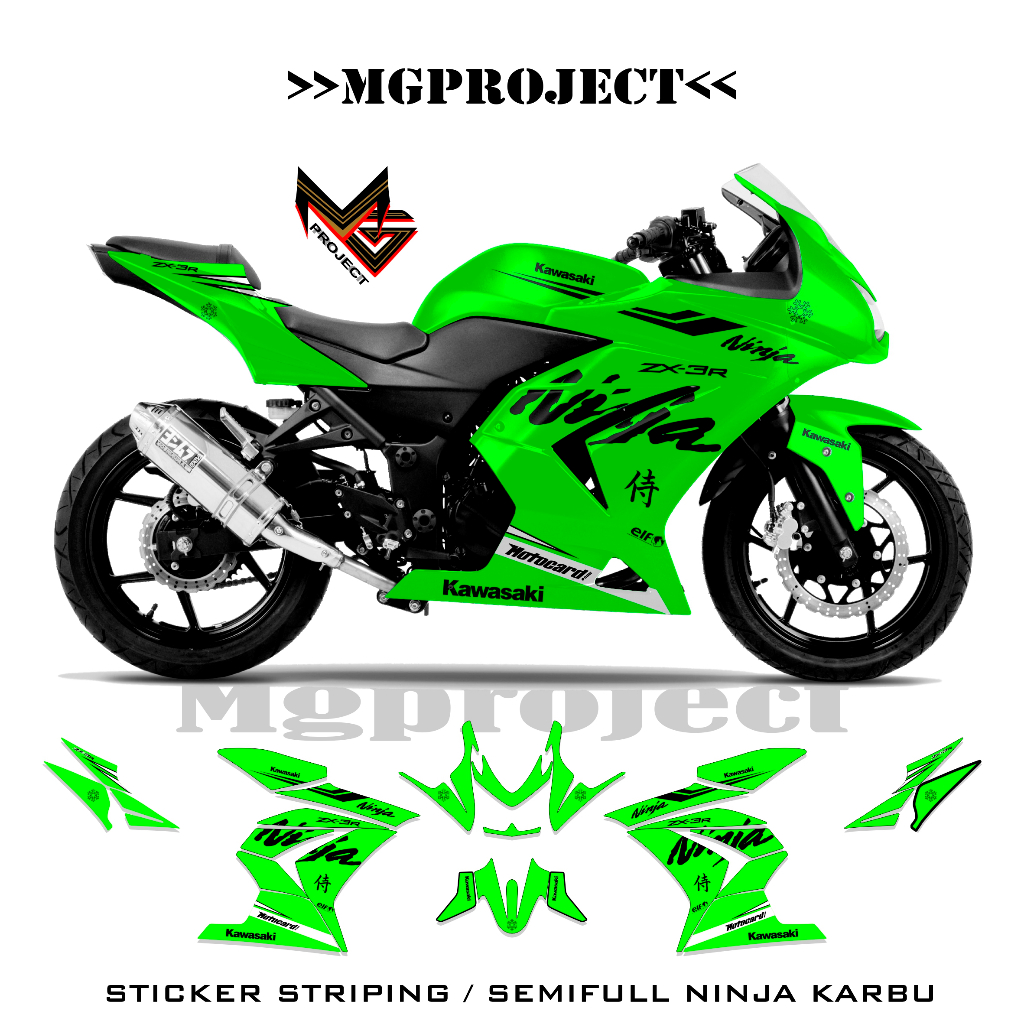 striping kawasaki ninja 250 karbu grafis, simple, stiker ninja karbu 250 semifullbody (sku6)