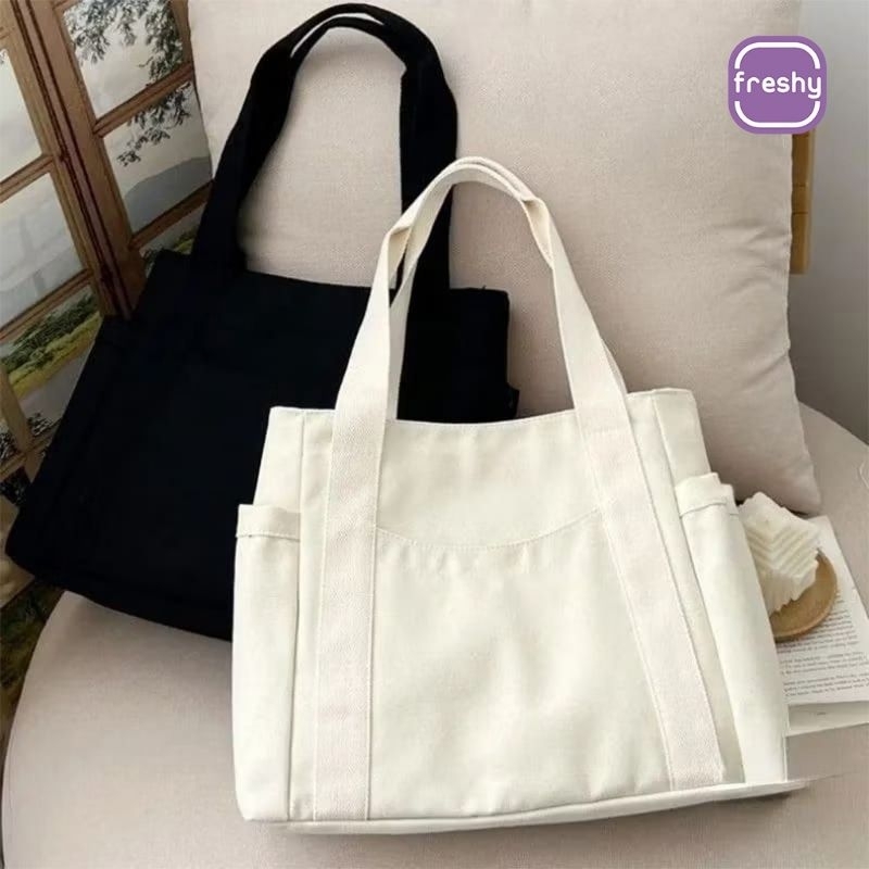 LOSTONSTORE - College Totebag Kanvas Untuk Kerja Pakai Resleting