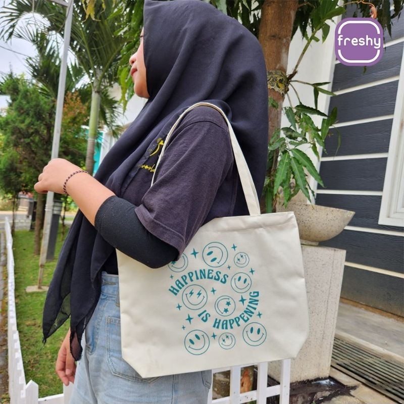 LOSTONSTORE - Tote Bag Kanvas Dinnir Quotes Aesthetic Tas Wanita uk. 35x30 Pakai Resleting