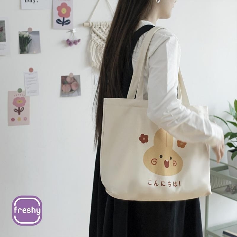 LOSTONSTORE - Totebag Happy time Wanita uk. 35x30 Pakai Resleting