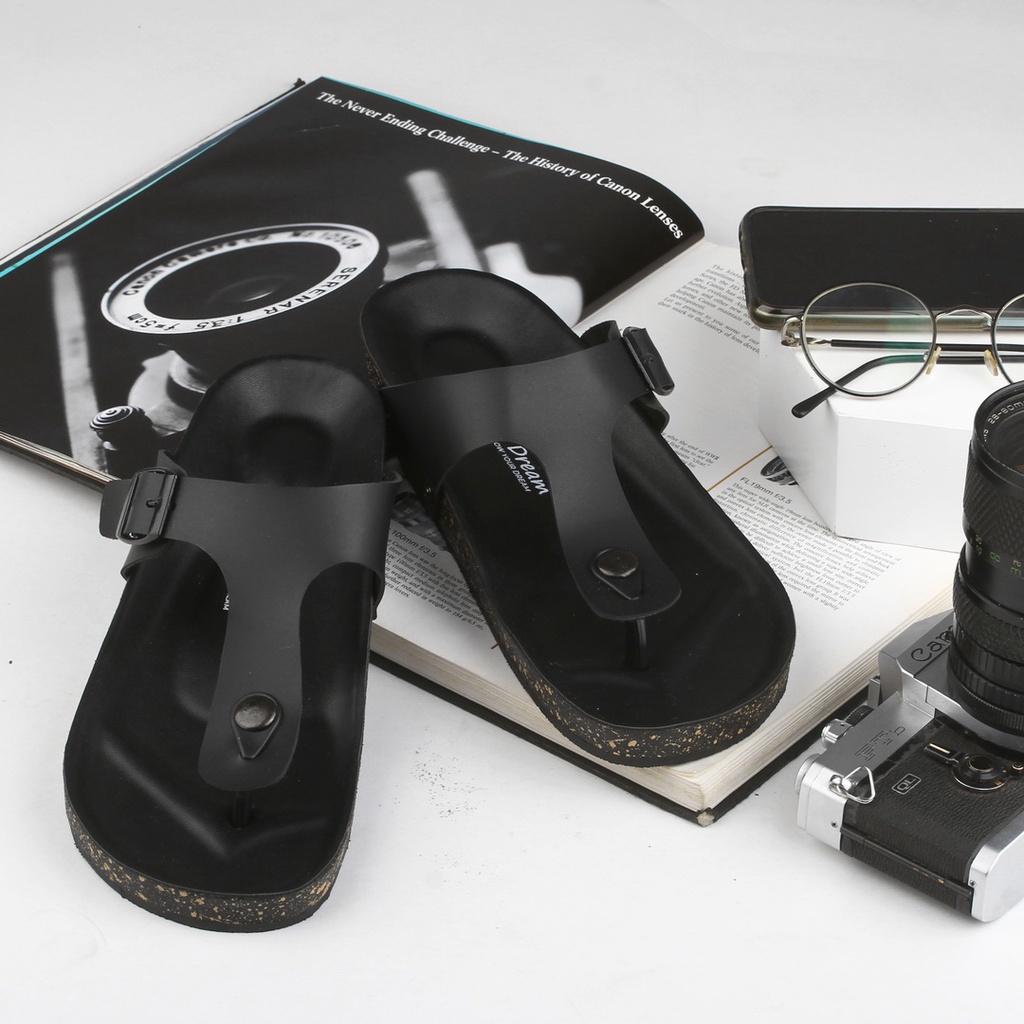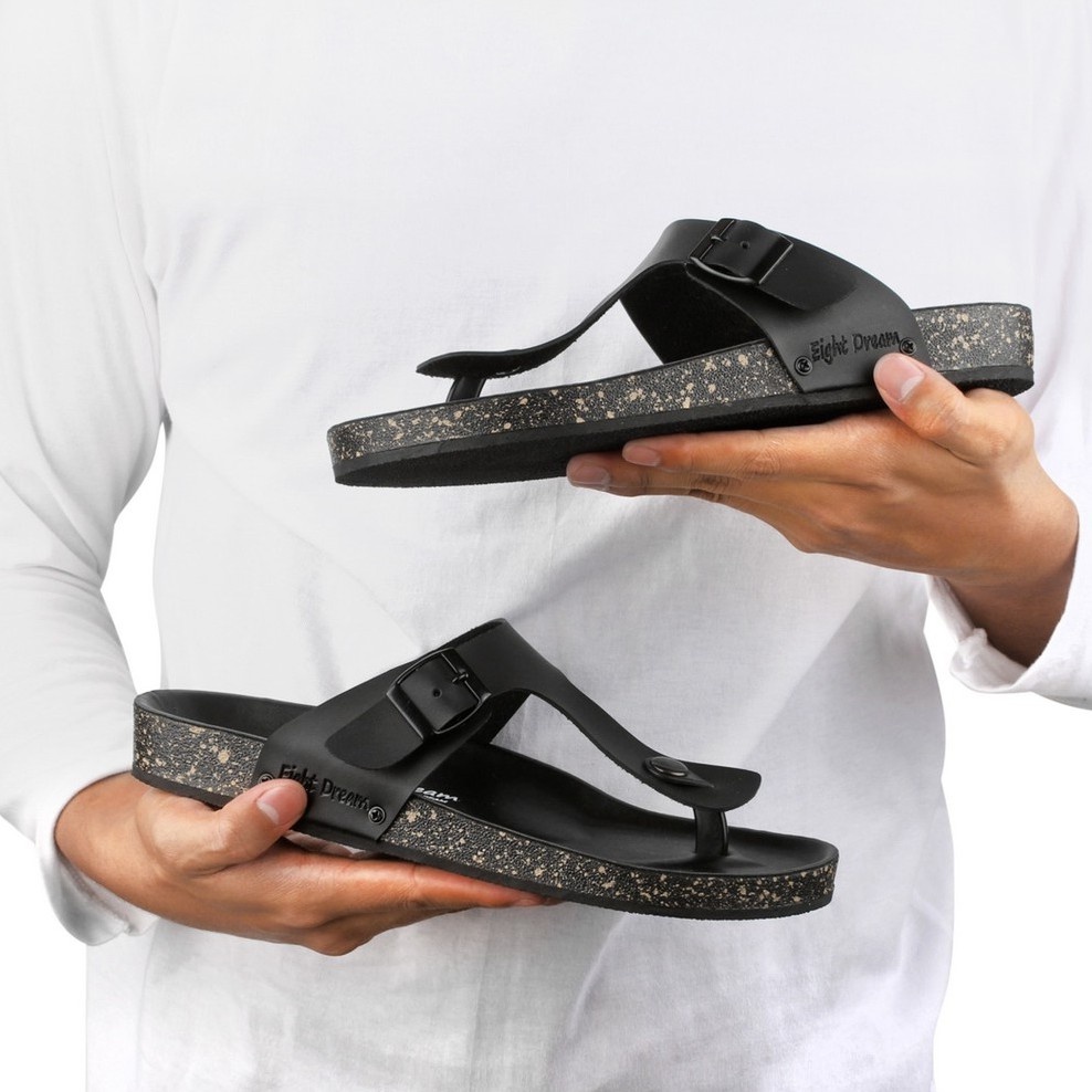 PROMO sendal ED Eight Dream - Aka Full Black Jepit Kulit Pria Distro Original Kekinian