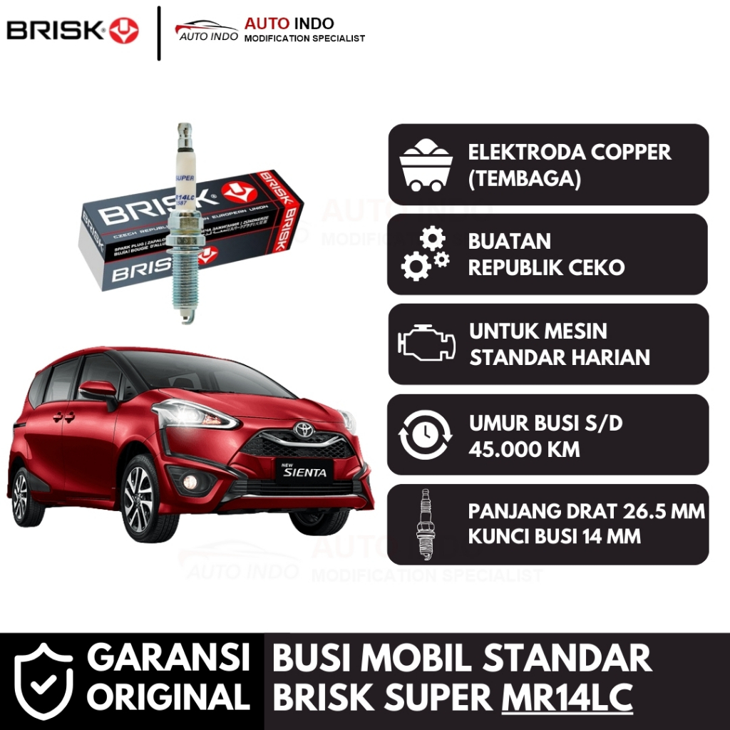 Busi Mobil Brisk Super MR14LC untuk Toyota Sienta | Garansi Asli | Kunci Busi 14 mm