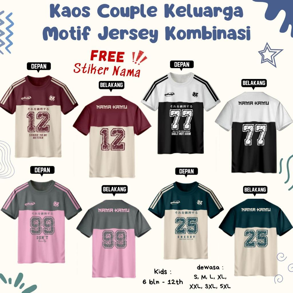 [FREE NAMA] Kaos Couple Oversize Keluarga Motif Jersey Kombinasi