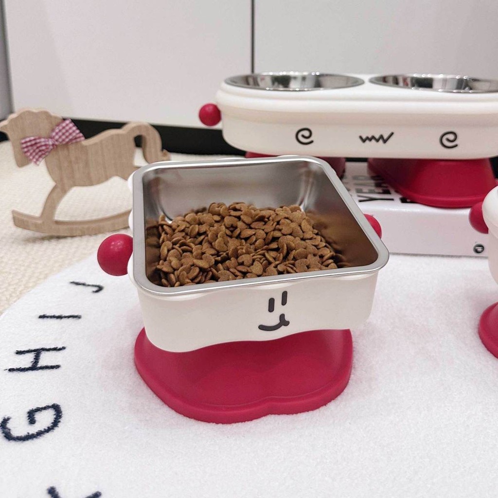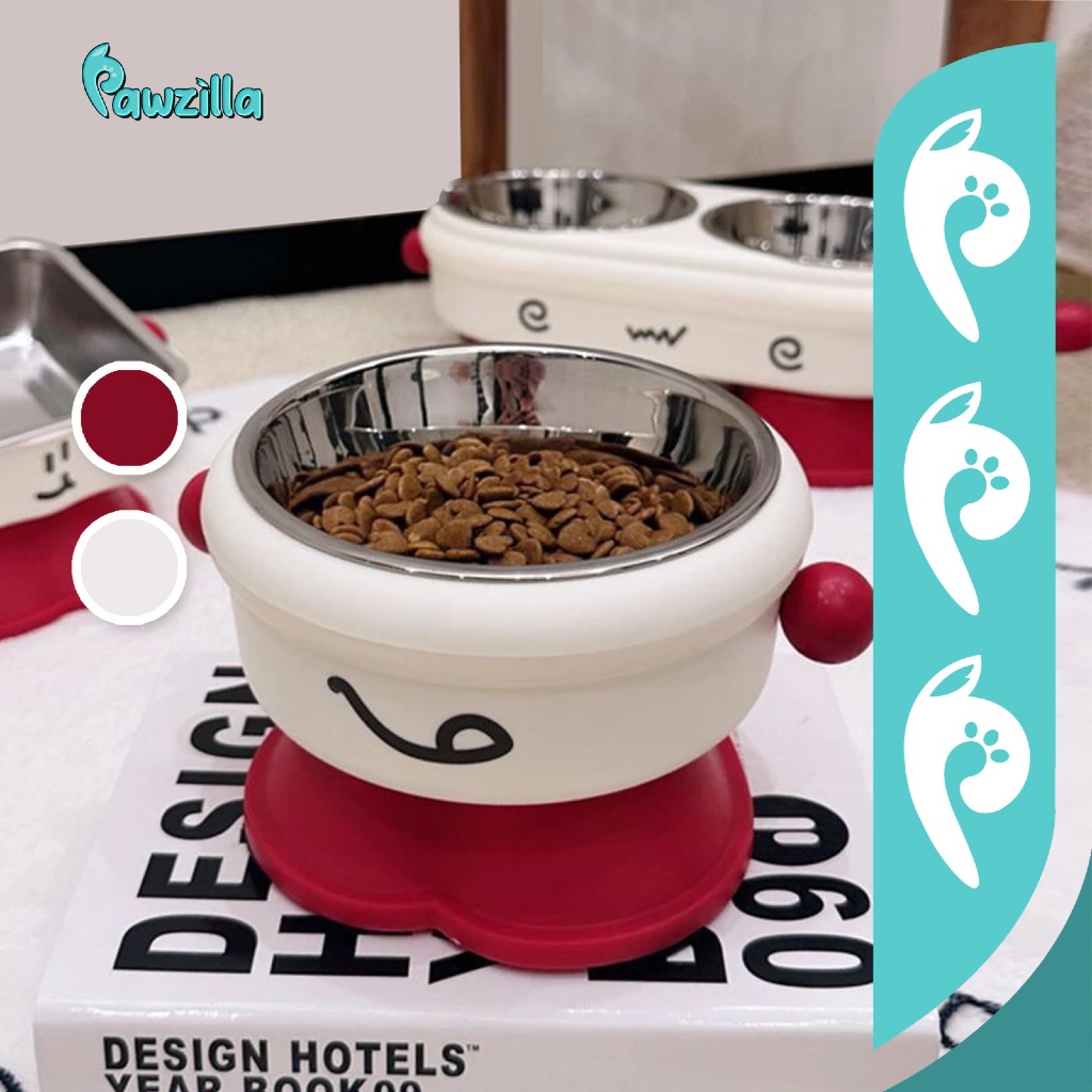 Pet Feeder Bowl Stainless Steel Tempat Makan Kucing Anjing Kaki Tinggi Pet Bowl Neck Protection