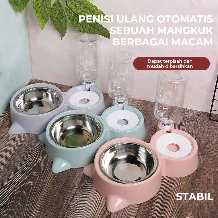 Tempat makan stainles dan air minum 500ml untuk hewan peliharaan kucing /anjing 2 bowl sesuai gambar