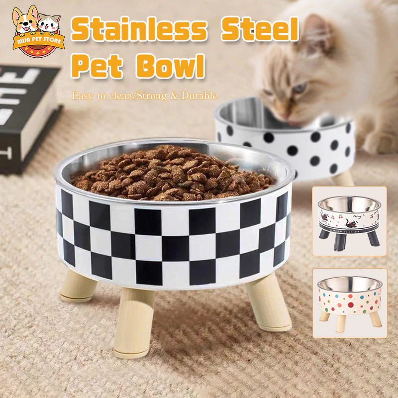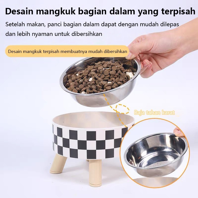 Mangkuk Kucing Anjing Makan Kucing Tinggi Stainless Steel Pet Bowl Neck Protection Anti Selip