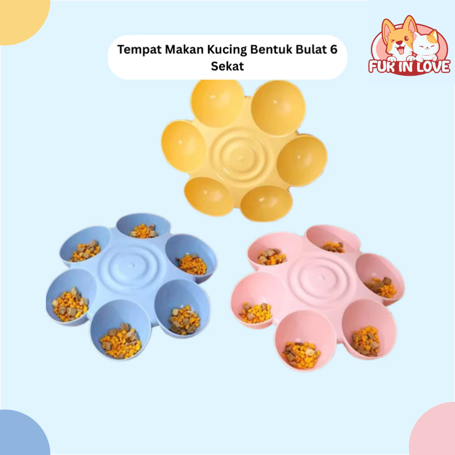 Tempat Makan Hewan Bulat 6 Sekat – Mangkuk Kucing & Anjing Kecil Biru