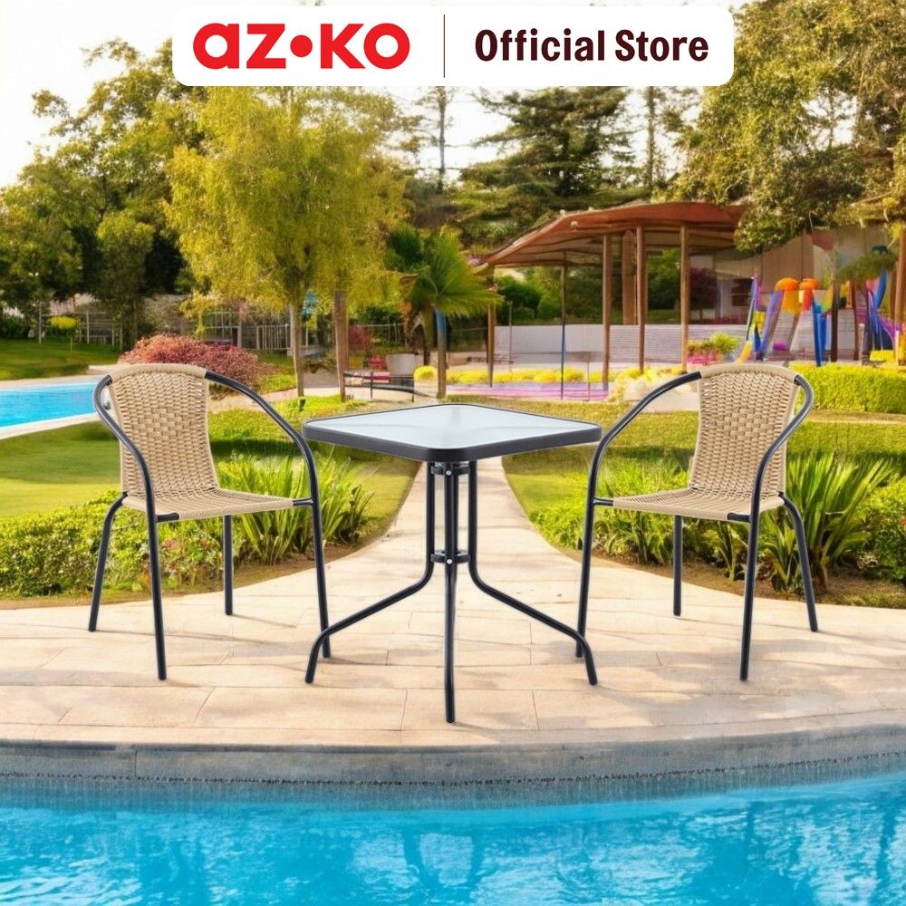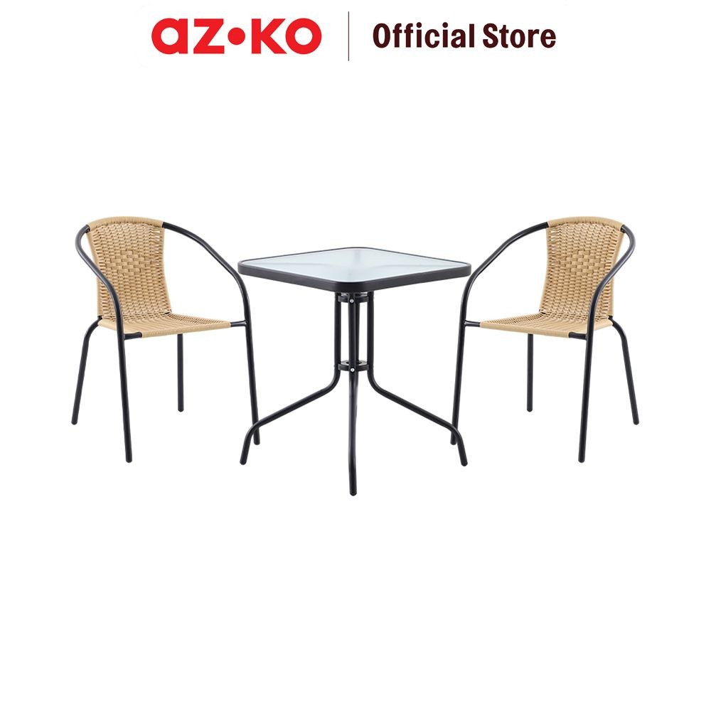 kursi teras depan rumah AZKO Soleil Set 3 Pcs Natura Kursi & Meja Teras Bistro Wicker Balcony Table Chair Furniture Outd
