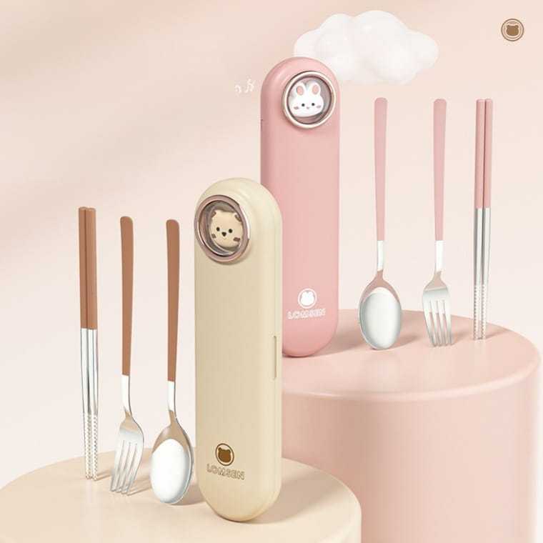 Set Alat Makan 3in1 Sumpit Sendok Garpu Stainless Steel Cutlery Set Alat Makan Traveling