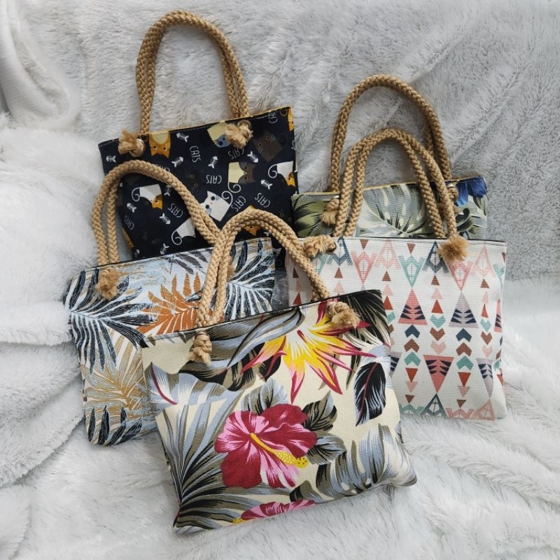 LOSTONSTORE - pouch kanvas tali kepang twill tempat kosmetik tali sumbu kepang motif beragam TWILL