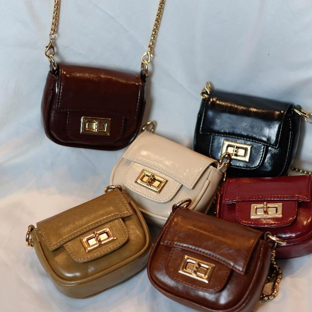 LOSTONSTORE - FIYA Tas Koin Mini New Collection Motif Polos Glosy Tas Selempang Tali Ulir Top Mini sling Bags