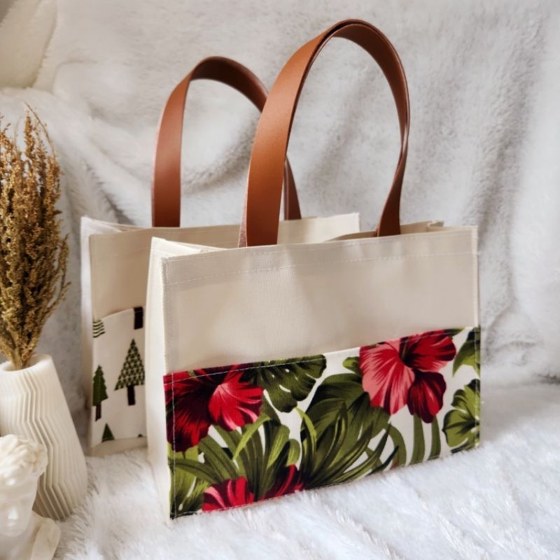 LOSTONSTORE - Tas Kanvas Kotak Motif Kombinasi / Tas Souvenir Kanvas Simple Termurah