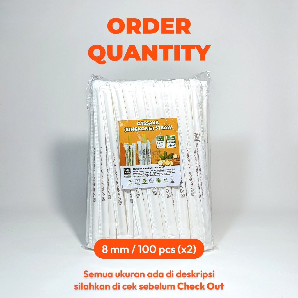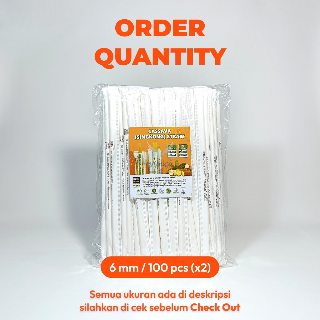 Straw Ecoplast || Cassava Straw || Straw Casava || Straw Singkong || Sedotan Ramah Lingkungan || Isian 100pcs || Isian 5
