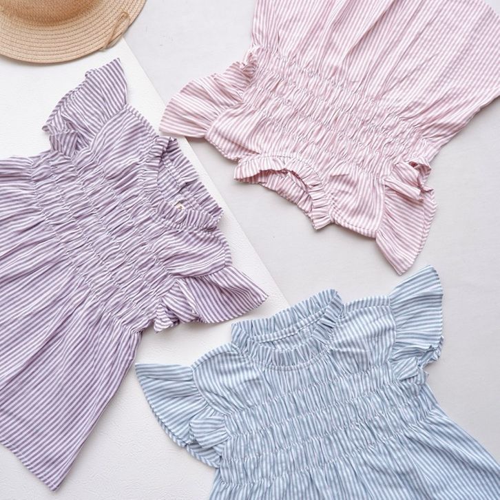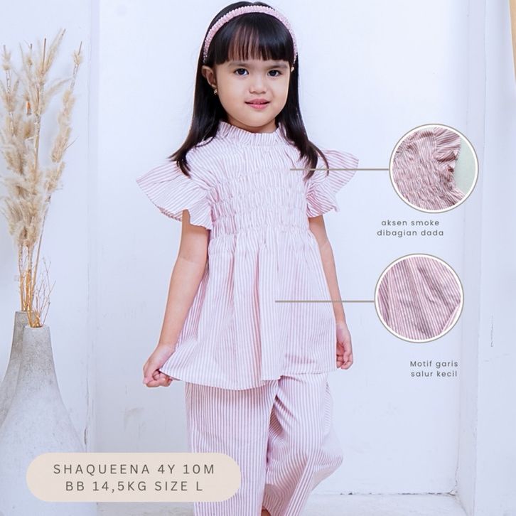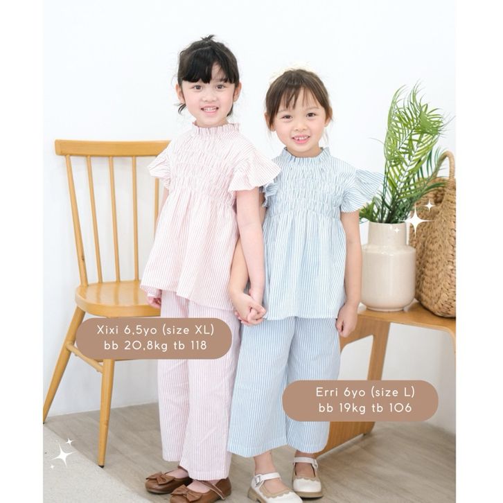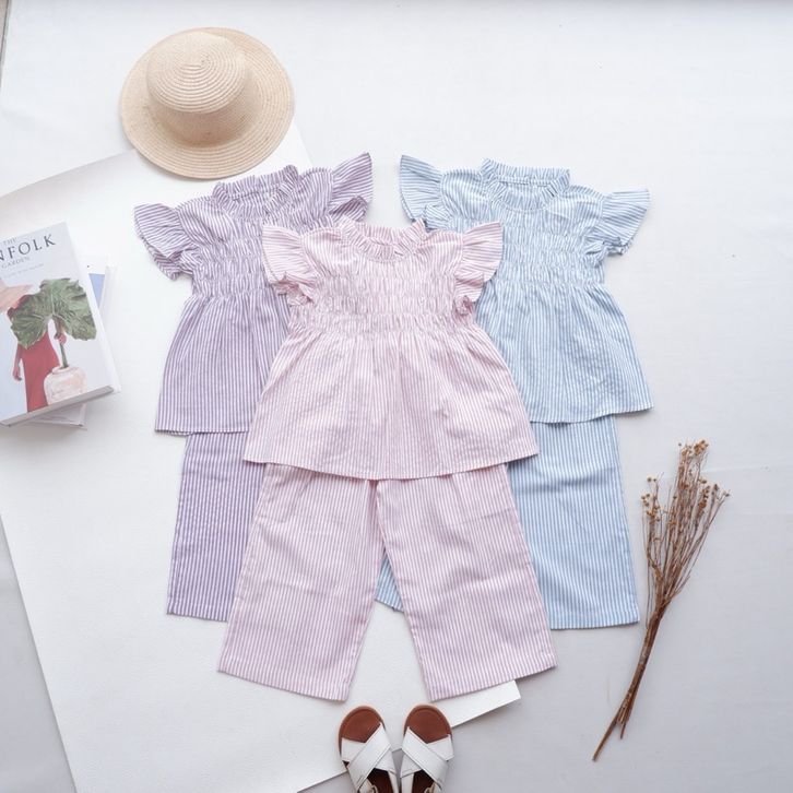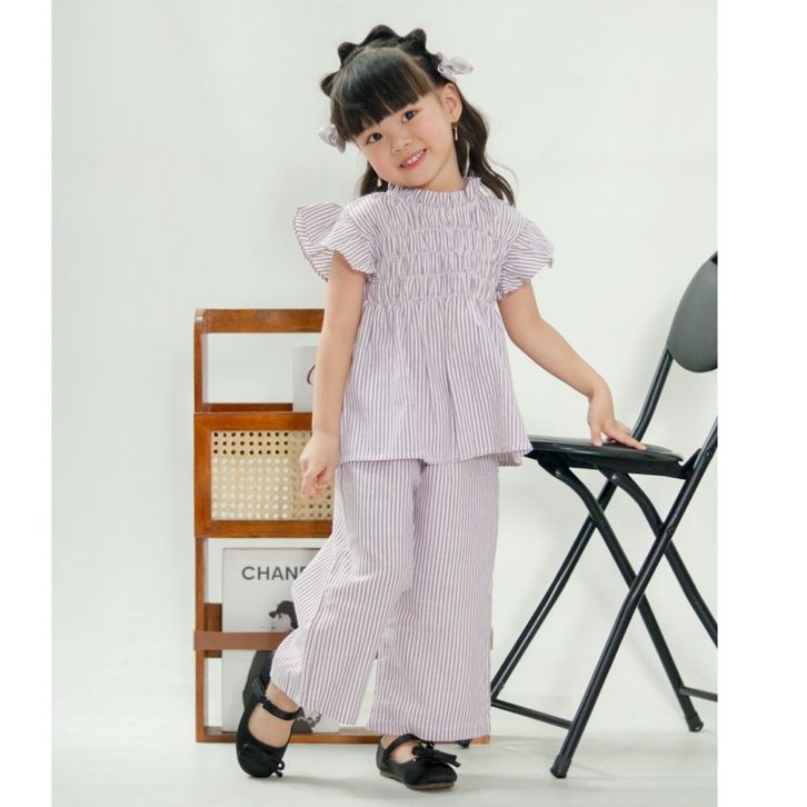 [Star] Setelan Anak Perempuan Usia 1-7Thn Oneset Atasan Lengan Pendek Dan Celana Panjang Model Salur kekinian Premium