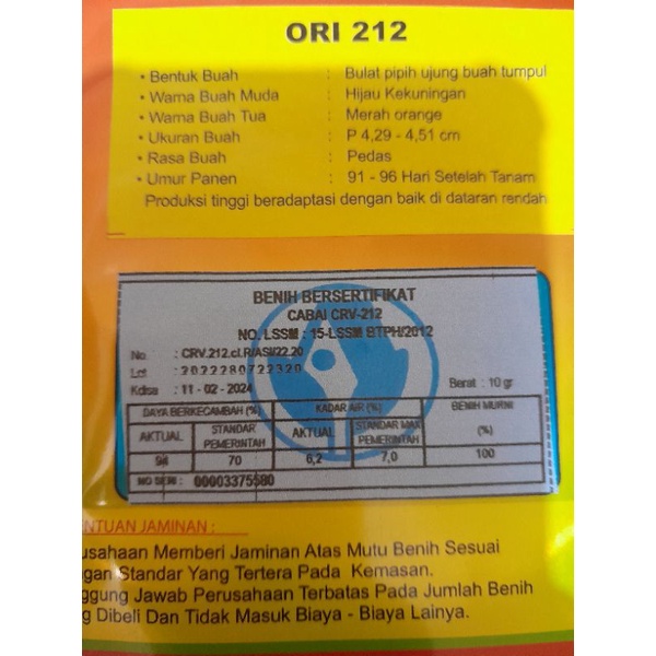 Benih Bibit Cabe ORI 212 10g Cap Aura Seed Produk Asli Cabe Rawit Setan