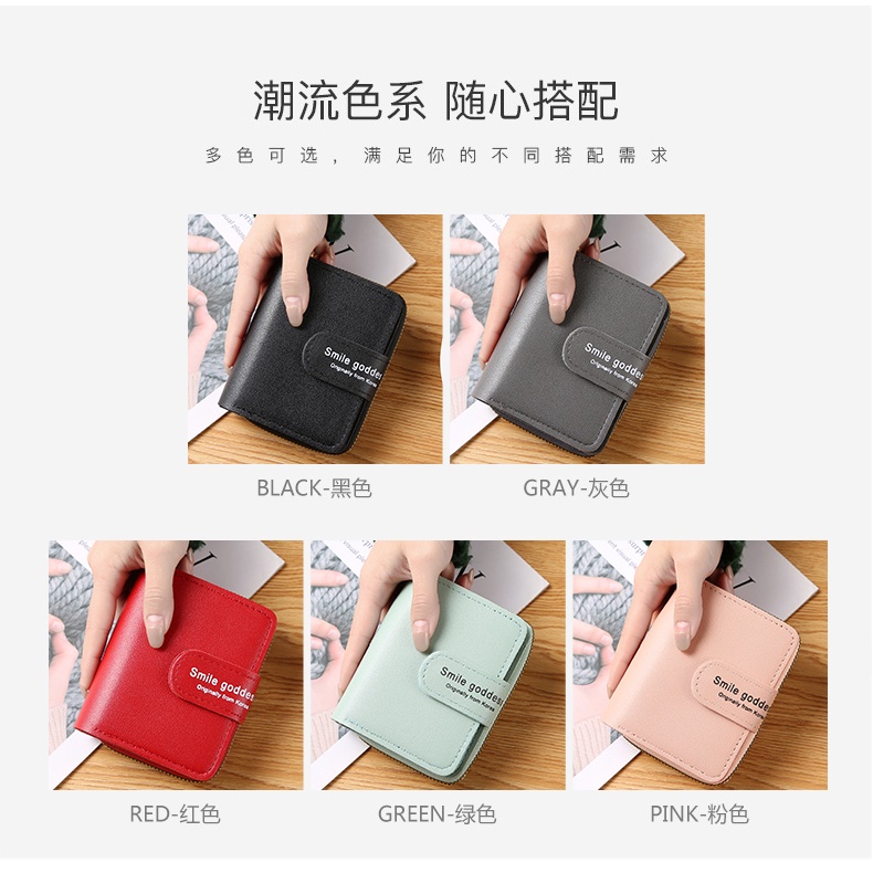LOSTONSTORE - Smile Goddess Baru Wanita Dompet Pendek Ritsleting Tas Clutch Gaya Korea Fashion Pemegang Kartu Dompet 818
