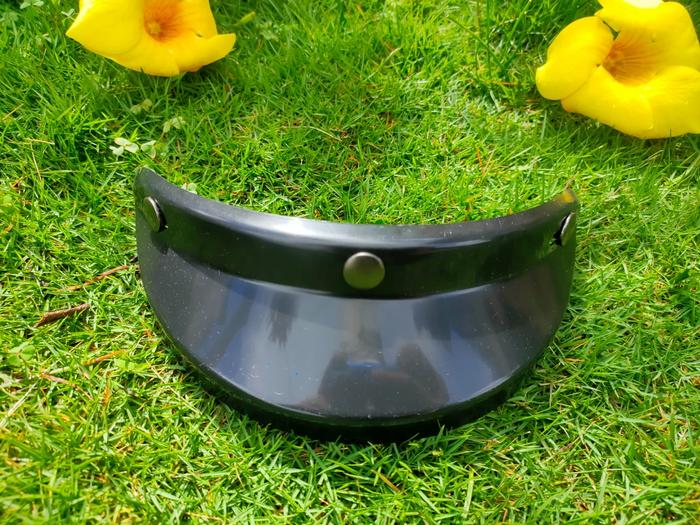 MEGA SALE KACA HELM BOGO RETRO CARGLOSS DATAR CEMBUNG HITAM BENING SILVER PELANGI PET ACCECORIS - KACA DATAR HITAM BEST
