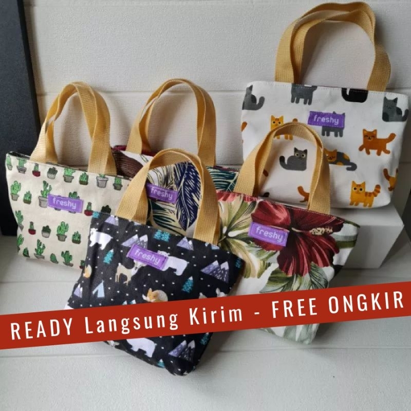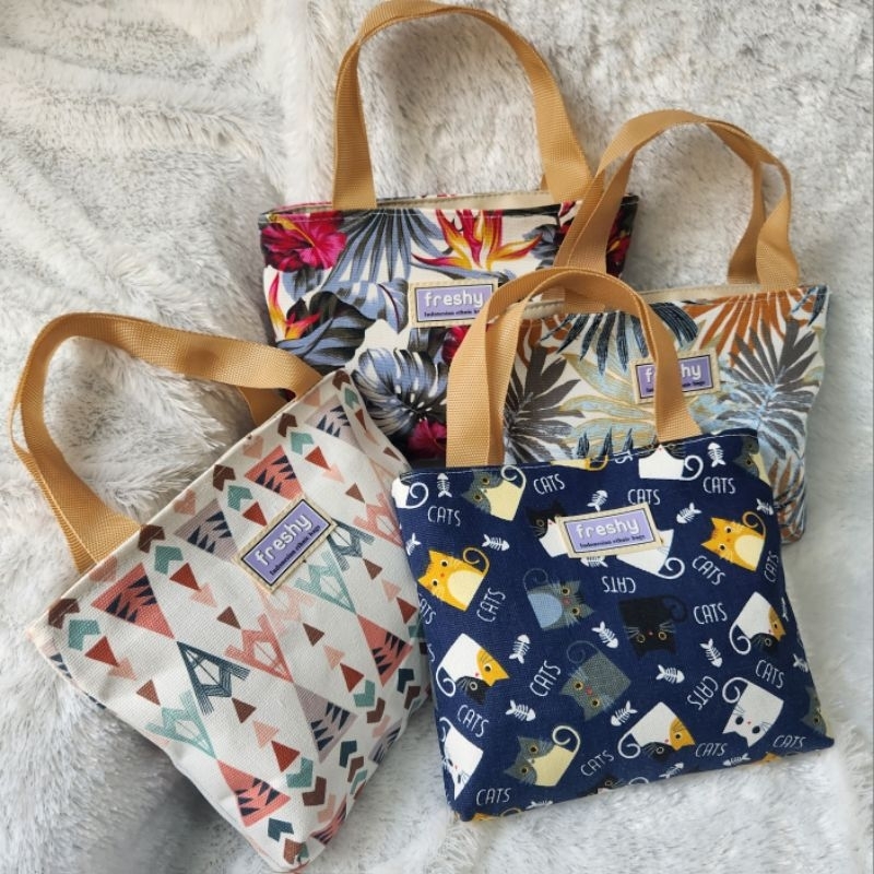 LOSTONSTORE - FRESHY - Pouch Kanvas Twill Tempat Kosmetik Motif Beragam