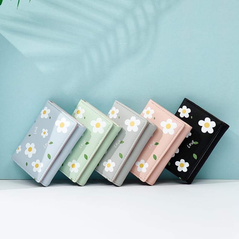 LOSTONSTORE - Smile Goddess Dompet Wanita Dompet Lipat Pendek Daisy Pattern Dard Holder H107