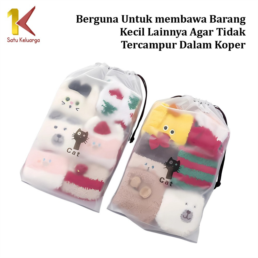 LOSTONSTORE - Satu Keluarga Travel Pouch Organizer C33 Tas Serut Kosmetik Karakter Tempat Penyimpanan Serbaguna