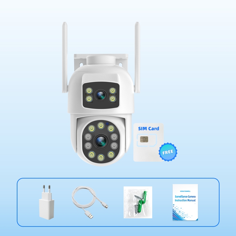 V380 BP3-4G Kamera Keamanan CCTV Lensa Ganda Luar ruangan Tahan Air Penuh Warna Penglihatan Malam Kartu SIM 4G Gratis