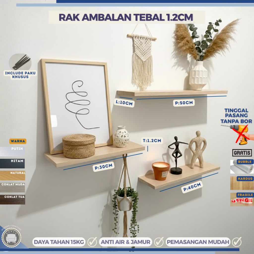 TERMURAH Rak Dinding Tempel Kayu Minimalis Dapur Kamar/ Ambalan Rak dinding Serbaguna Terbaru kekinian Hiasan Dinding