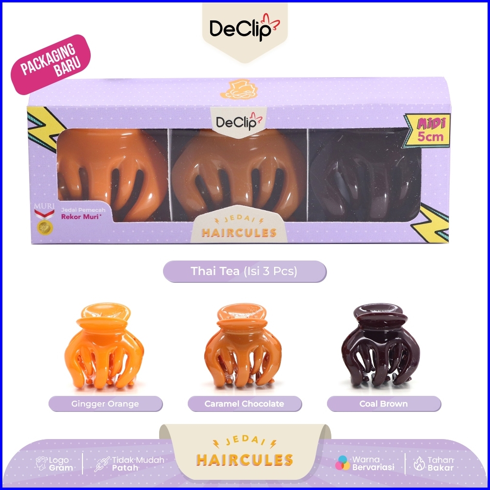 Jedai Haircules Declip Original Gigi 5 Ukuran 5cm Warna Thai Tea Isi 3pcs