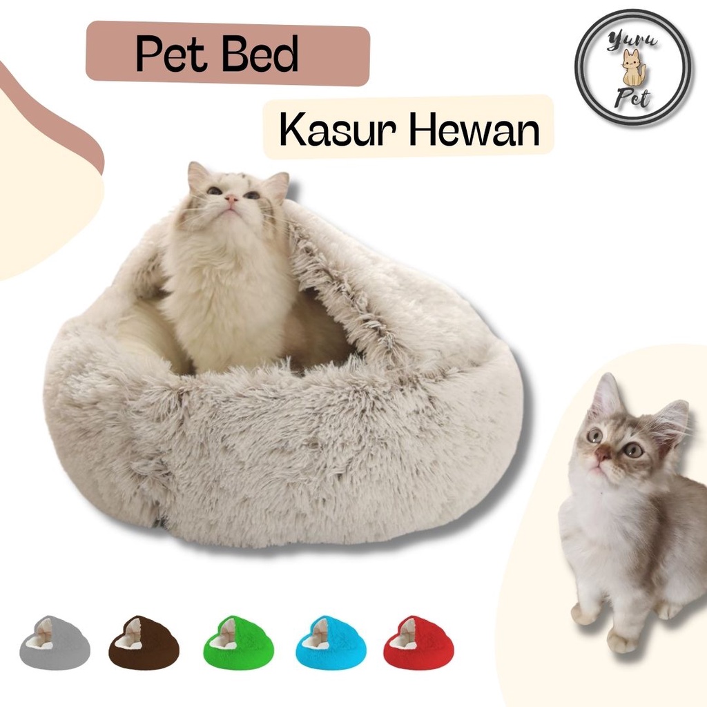 Tempat Tidur Kucing Hangat dan Nyaman Bentuk Bulat Bertudung Ukuran 50cm x 50cm