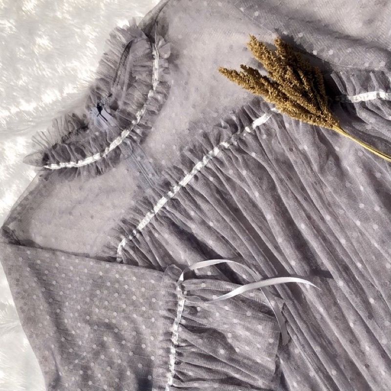 MARIA COLLECTION Elmira Outer - Tunik Brukat Tile Polkadot wanita Outfit Kondangan wisuda lamaran All Size