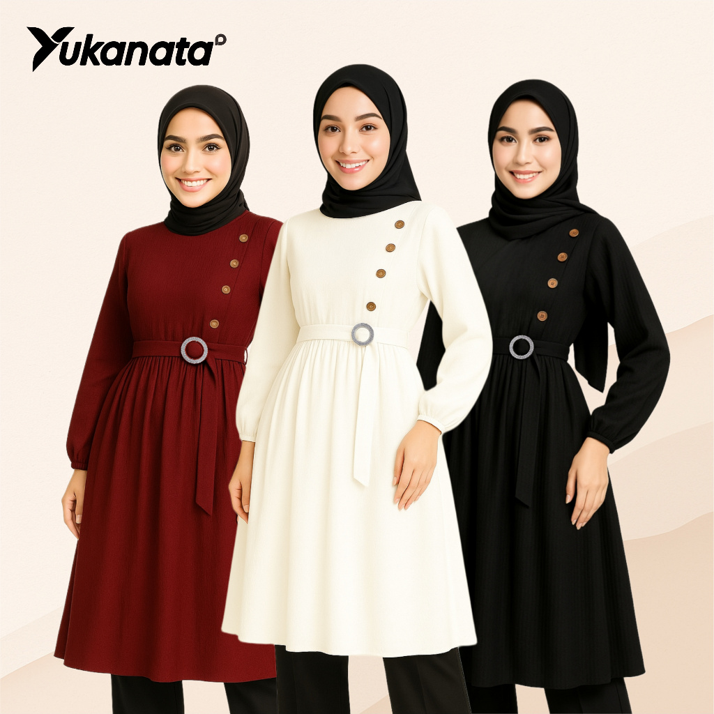 YUKANATA.ID - Tunik Adreena Anggun Elegan Modern Simple Stylish Fashion Muslimah Kekinian Matterial Crinkle Airflow