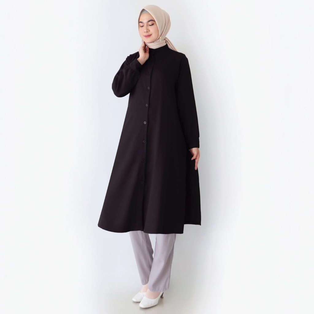 baju longdress tunik kemeja basic polos kerja polos wanita lengan panjang hitam putih jumbo shakiila