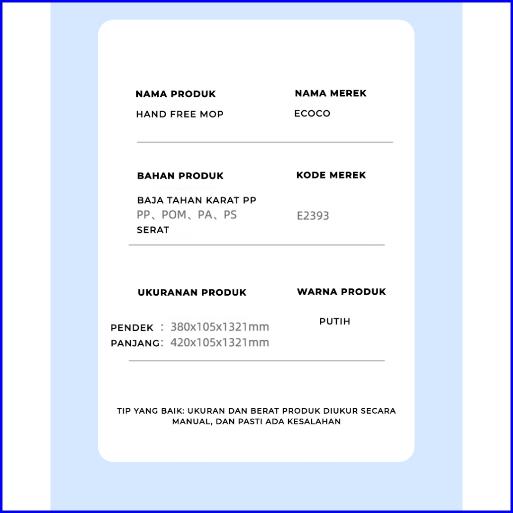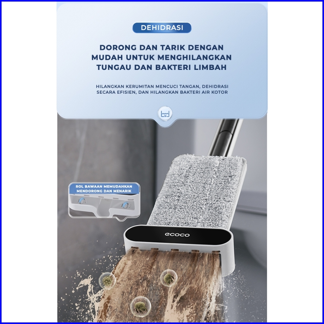 Ecoco Hand Free Mop - Pel Lantai Premium Pel Kering Pel Basah Pembersih Lantai Anti Bakteri